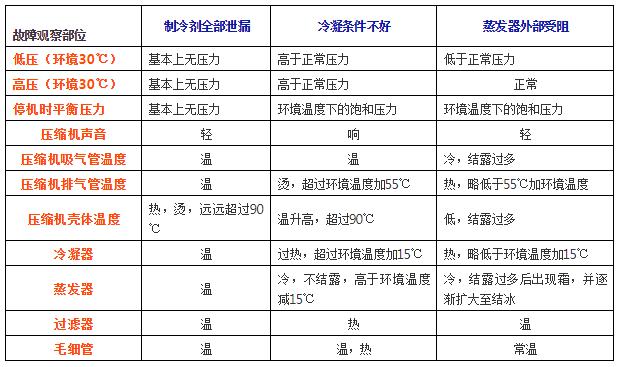 Ø、制冷循環(huán)系統(tǒng)堵塞,毛細(xì)管或干燥過濾器堵塞后,流入蒸發(fā)器的液體制冷劑減少,制冷量下降。
